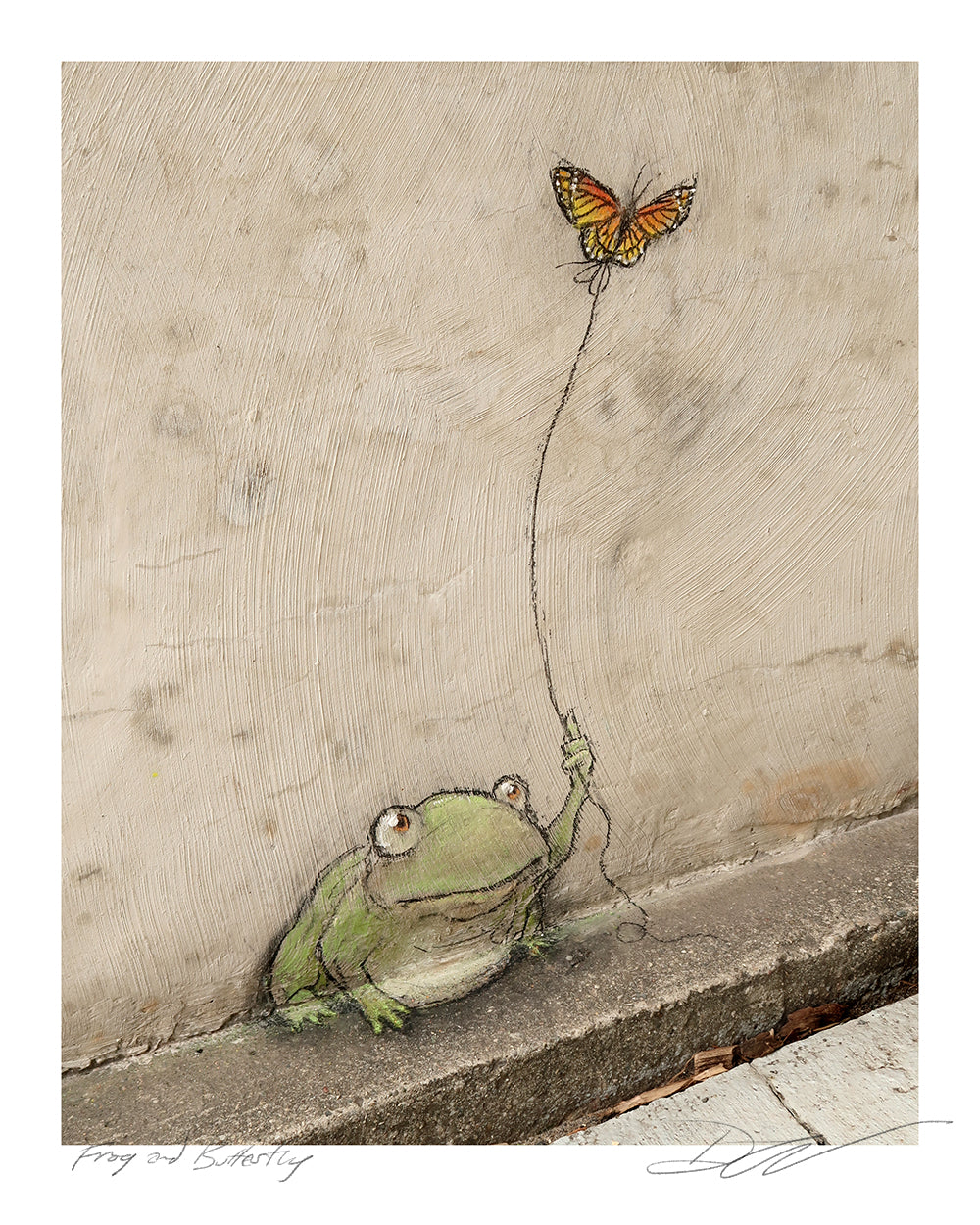 This unique friendship was drawn with chalk and charcoal at the Belle Isle Nature Center (where both frogs and butterflies are celebrated) in September 2017.